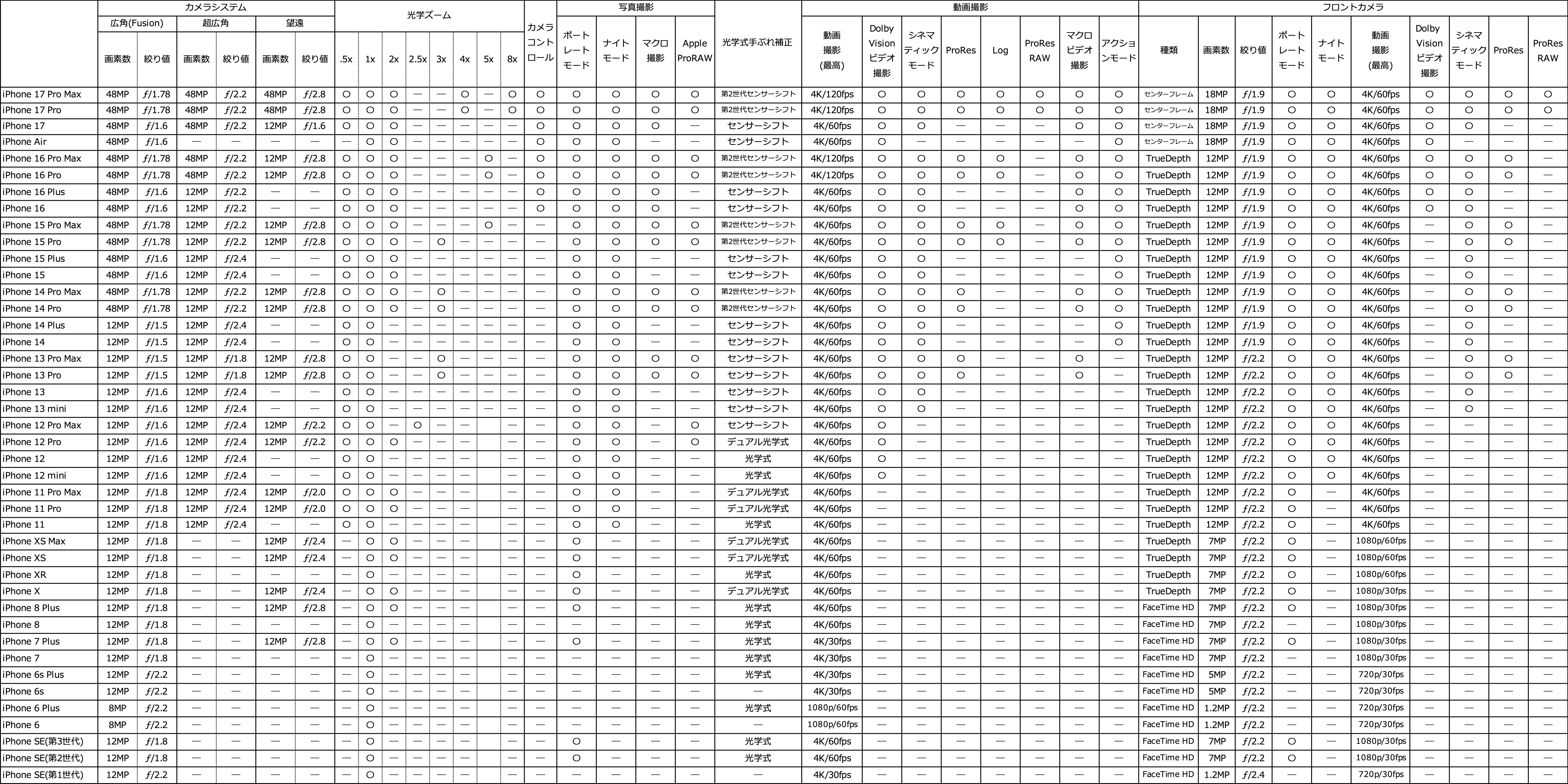 歴代iPhoneのカメラ機能を徹底比較!【2025年最新iPhone 17 Pro Maxまで追記】